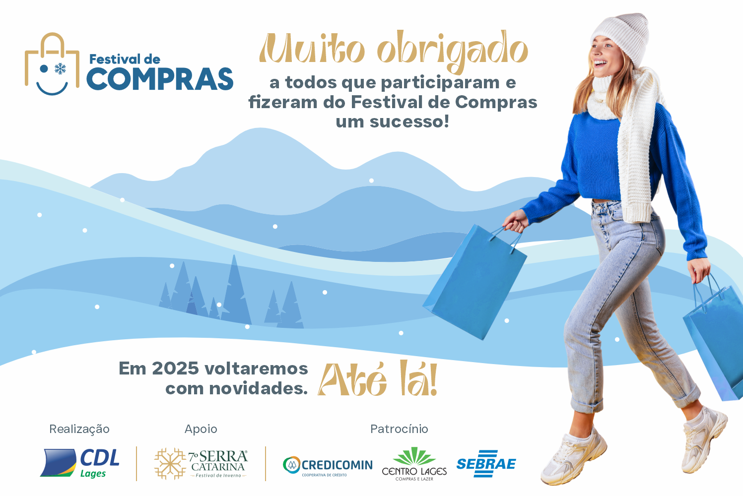 Cada compra realizada se transformou em uma chance de ganhar uma mochila/necessaire, disponíveis nas cores coral, marinho e turquesa! “Graças à sua participação, o festival foi um sucesso e fortaleceu a relação entre comerciantes e consumidores. Agradecemos a todos que nos acompanharam nesta jornada, e um agradecimento especial à CDL Lages, ao 7º Serra Catarina Festival de Inverno, e aos nossos patrocinadores, Credicomin e Sebrae, que tornaram tudo isso possível, ressaltou a Coordenadora do Núcleo Centro Lages, Agnes Prachthauser.
