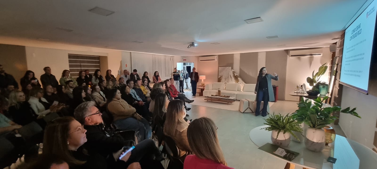Desta vez o público alvo foram as imobiliárias e construtora. A jornalista e especialista em Marketing Digital, Aline de Oliveira foi a facilitadora do treinamento.
