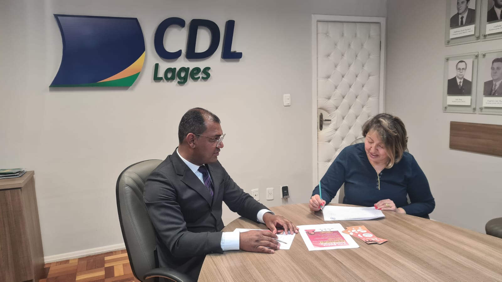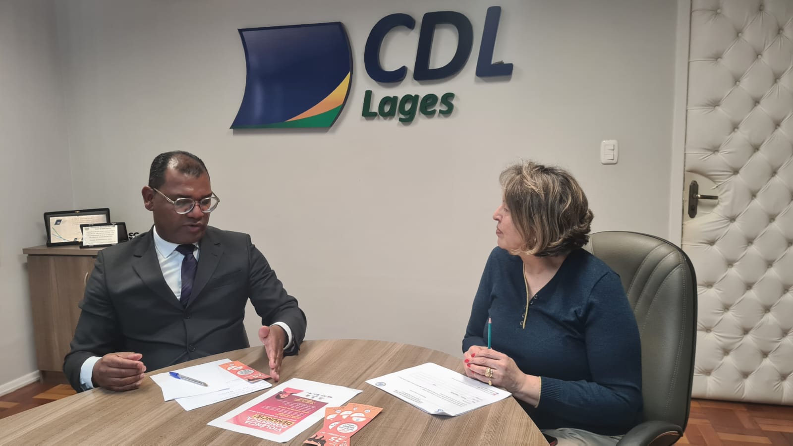 "Fortalecimento ao enfrentamento à violência contra as mulheres, a CDL Lages abraça essa iniciativa", enfatizou o Diretor Executivo Jhonathan Roberto em reunião com a Presidente do Soroptimista em Lages, Sirlei da Silva Rodrigues.