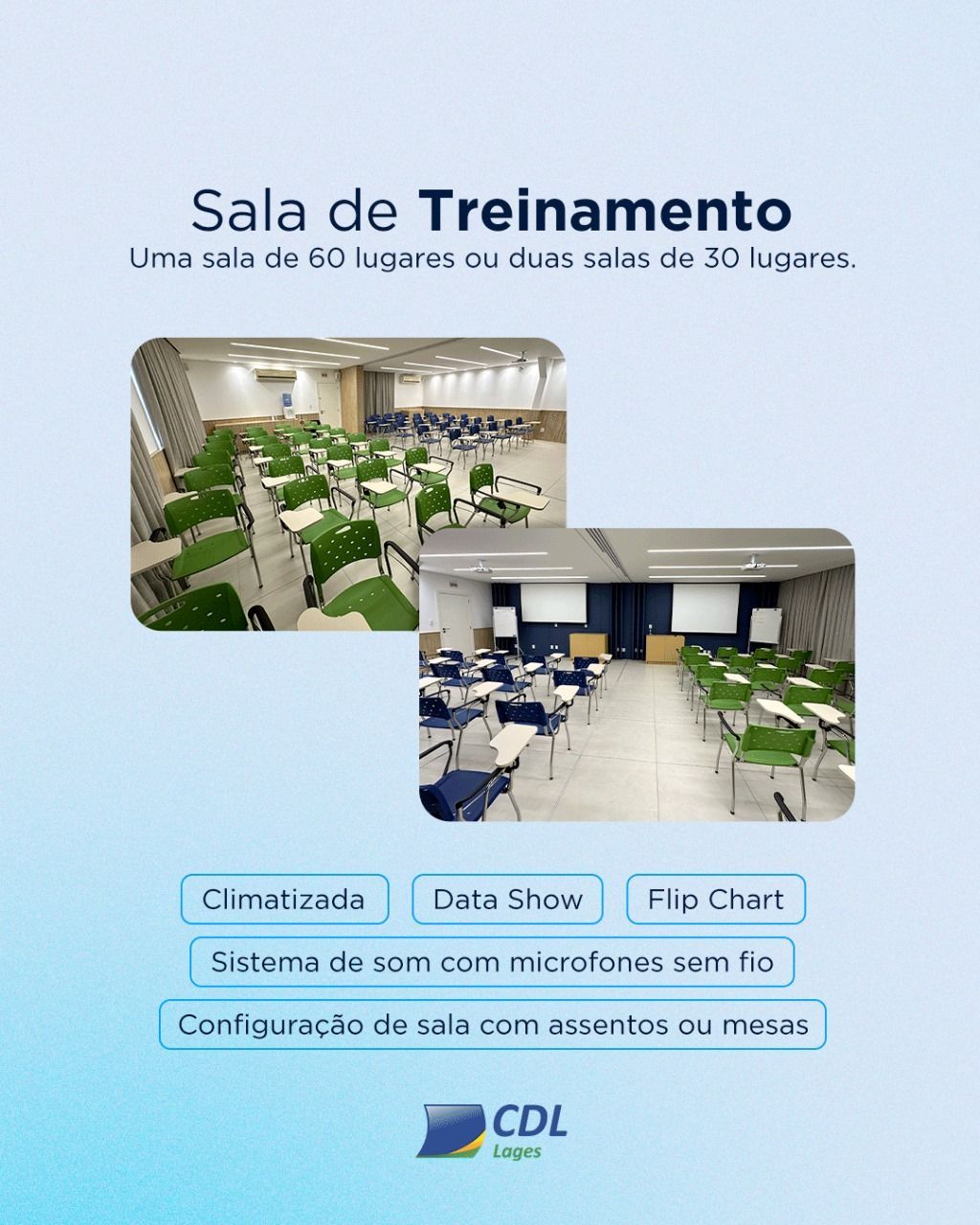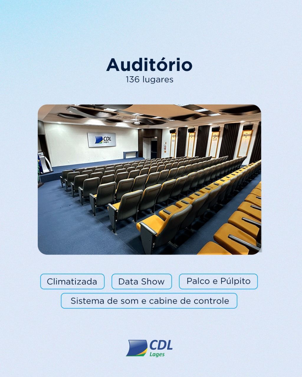 Entre em contato conosco para mais informações e reserve já o espaço ideal para o seu evento na CDL Lages, contato 49 32217007 ou clique aqui!