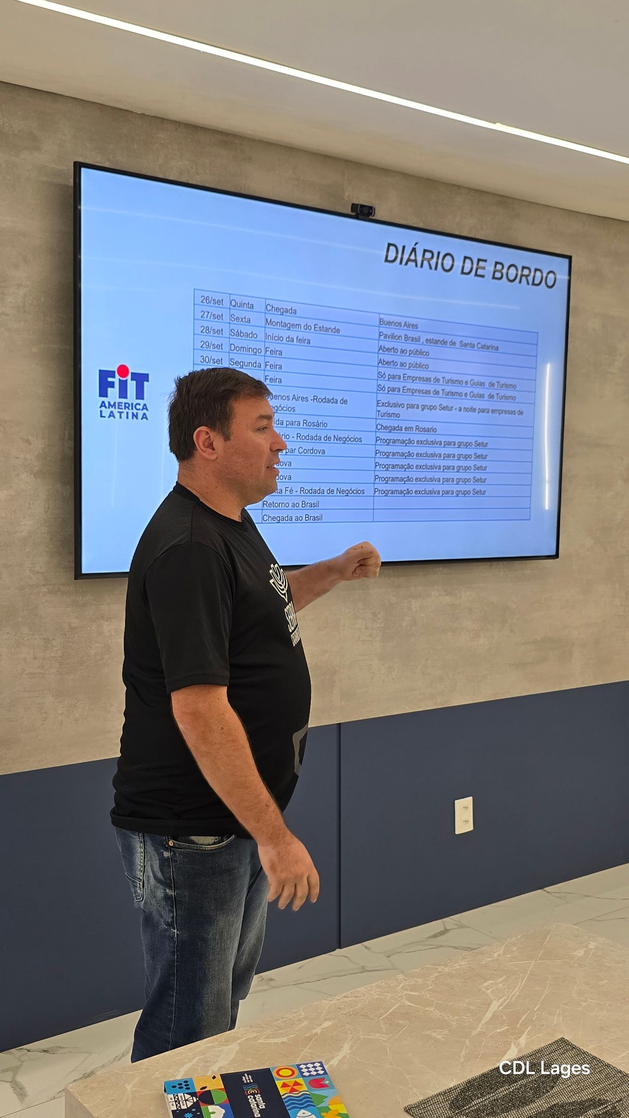 Nesta terça-feira, 29, a Câmara de Dirigentes Lojistas de Lages realizou reunião da diretoria com um foco especial em áreas essenciais para o desenvolvimento da região: turismo, água, saneamento e segurança. A reunião foi marcada pela apresentação dos resultados da participação dos empresários locais na Feira Internacional de Turismo da América Latina (FIT), que ocorreu em Buenos Aires, Argentina, de 28 de setembro a 2 de outubro.