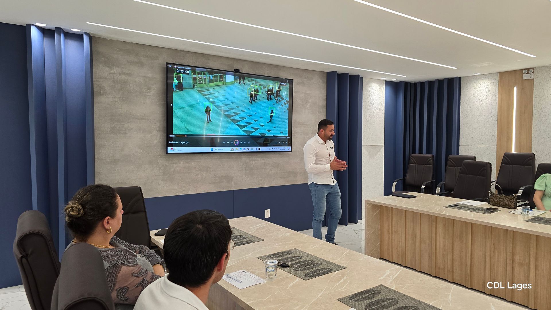 A segurança, outro pilar importante para o desenvolvimento regional, também foi tema da reunião, já abordado em outras reuniões também. A empresa Defentec apresentou seu sistema de segurança interligado com inteligência artificial, que já possui um case de sucesso na cidade de Balneário Camboriú/SC e agora está sendo implementado em Lages, o sistema está disponível na rua Correia Pinto na área central. Este sistema oferece monitoramento em tempo real e reconhecimento facial, trazendo mais segurança para a comunidade, o sistema de segurança privada foi apresentado pelo Sandro Camargo.