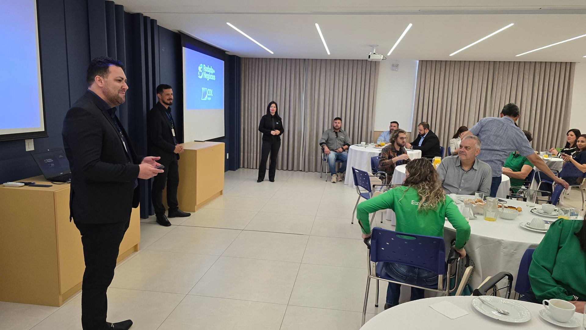 Nesta manhã, 24, quinta-feira, a Câmara de Dirigentes Lojistas, a CDL de Lages promoveu uma produtiva Rodada de Negócios, reunindo associados e parceiros, em um ambiente propício para a troca de experiências e a geração de novas oportunidades. Destacando-se como uma plataforma estratégica para que cada empresário pudesse apresentar seu negócio, compartilhar suas inovações e estabelecer conexões valiosas.